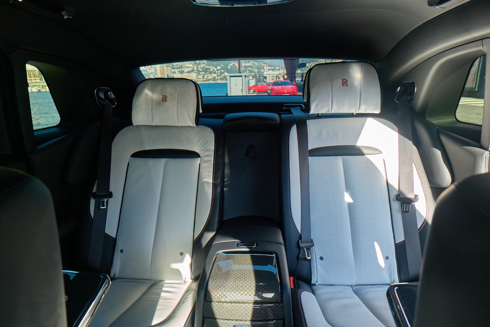 Inside, the Rolls-Royce Ghost Black Badge offers a serene yet modern environment. You’ll find carbon fiber and technical weave accents mixed with soft leathers and ambient lighting. The attention to detail is unmatched, from the starlight headliner to the bespoke stitching and illuminated dashboard.